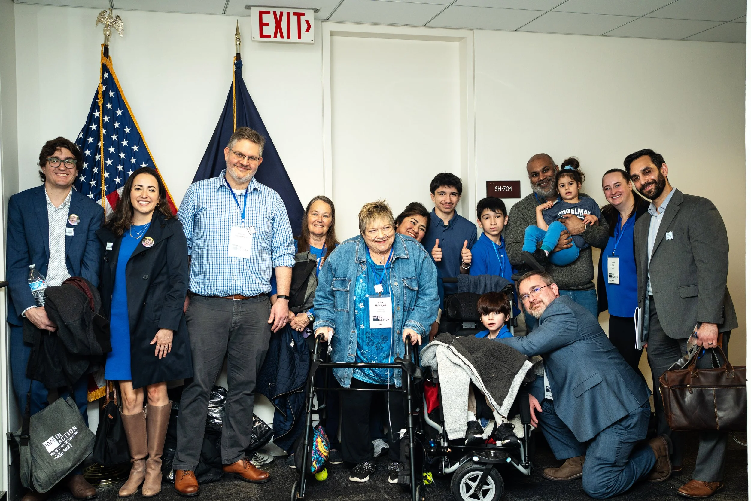 Angelman Advocates pose for a photo outside of the office of Senator Mark Warner, after a meeting to discuss their advocacy priorities.